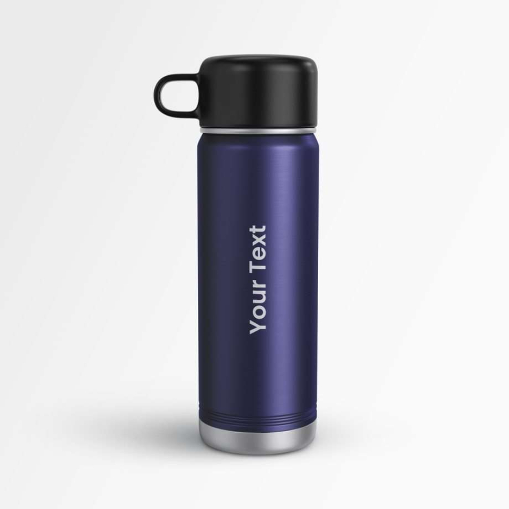 Branded sports bottle. Clear blue with white text. Maximum characters 20 allowed. Dishwasher safe.